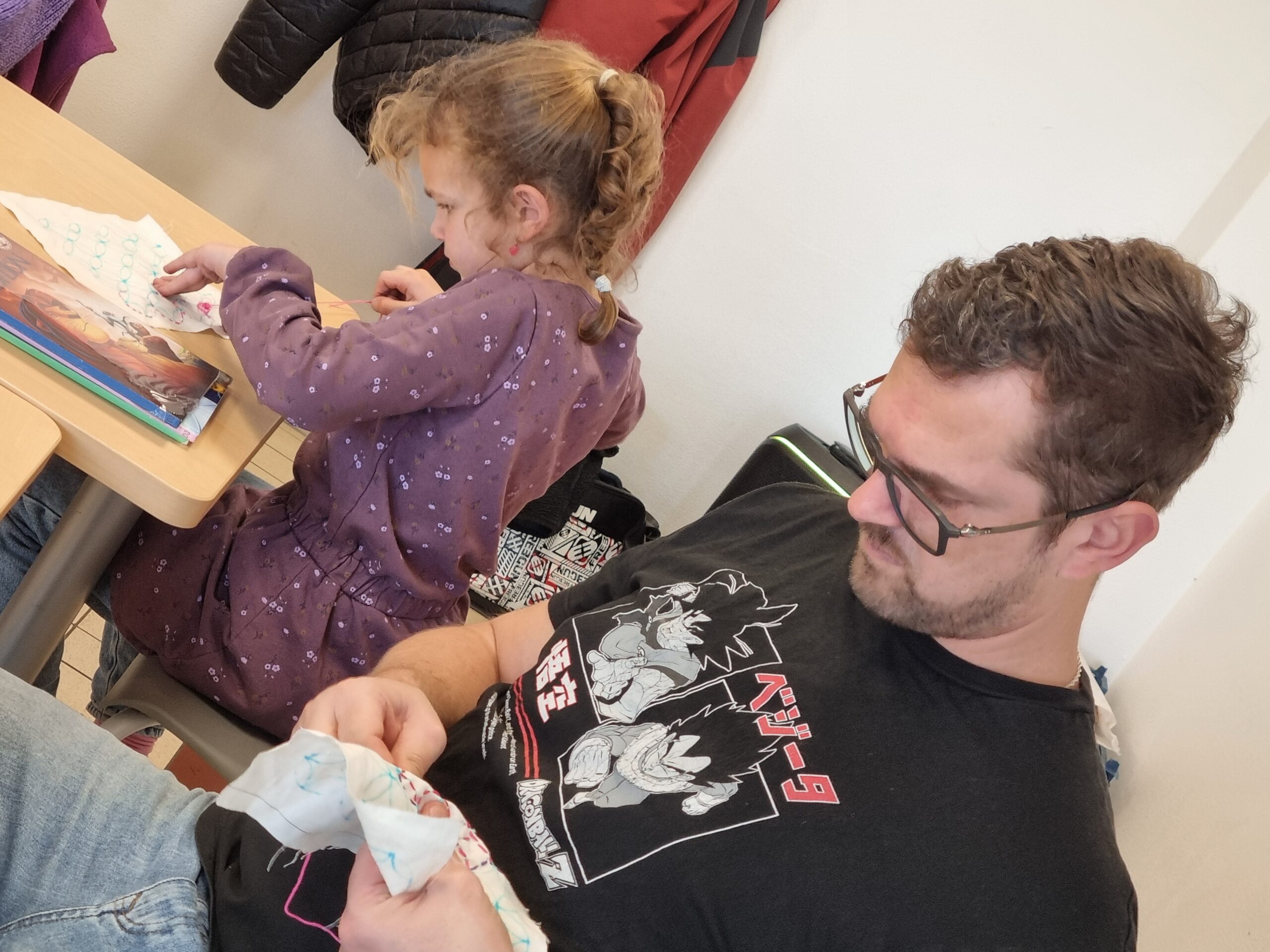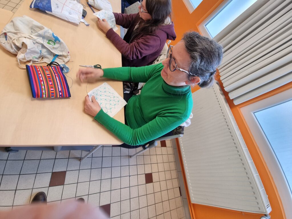 Samedi 10 janvier: Un atelier tout en finesse et en précision, petits et grands se sont concentrés pour « tirer l’aiguille » sous l’œil attentif de Chloé qui avait préparé pour chacun un patron … Nous avons terminé par la traditionnelle « galette des rois » de saison!