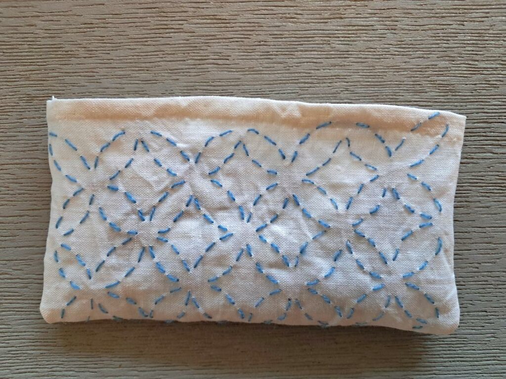 « Petits bâtons » ou « petits points » : Elle était à l’origine utilisé pour renforcer et réparer les vêtements des paysans japonais en superposant plusieurs couches de tissus avec des points de coutures réguliers.